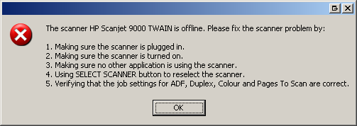 If you are seeing an error message similar to below reporting that your scanner is offline: