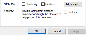 Right click properties on the zip file and check if the file is blocked. If so, click unblock â apply â ok.