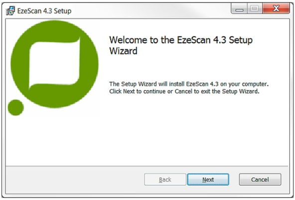 This will launch the EzeScan installer. The main installation screen displays: