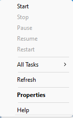 Simply choose ‘Start’ to start a service that is not currently running, or choose ‘Stop’ to stop a running service.