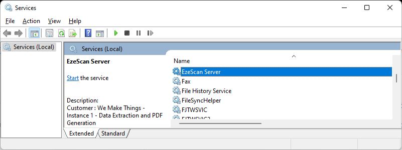 Take note of the Service name for future use (i.e. Ezescan Server)