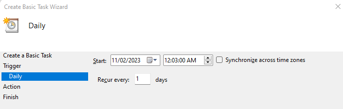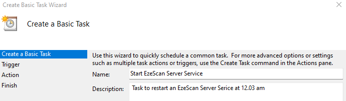 15. Congratulations you have just created a scheduled task that will run at 12.03 am every day that will restart a stopped EzeScan Server service.