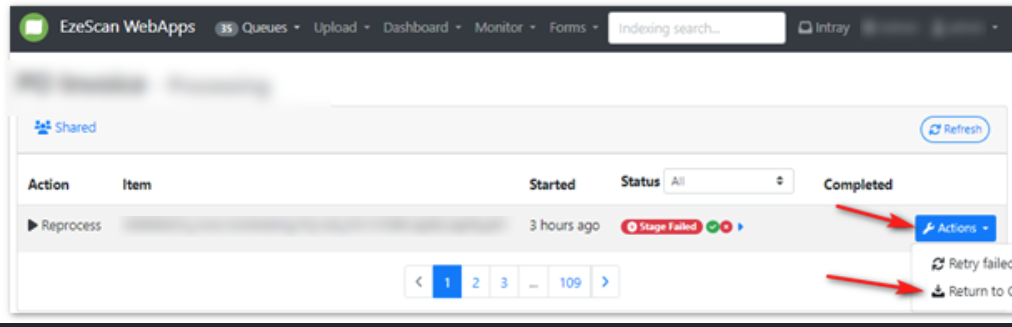 Once the document is returned to the queue – you go back into the “List Items” to action or remove the document.