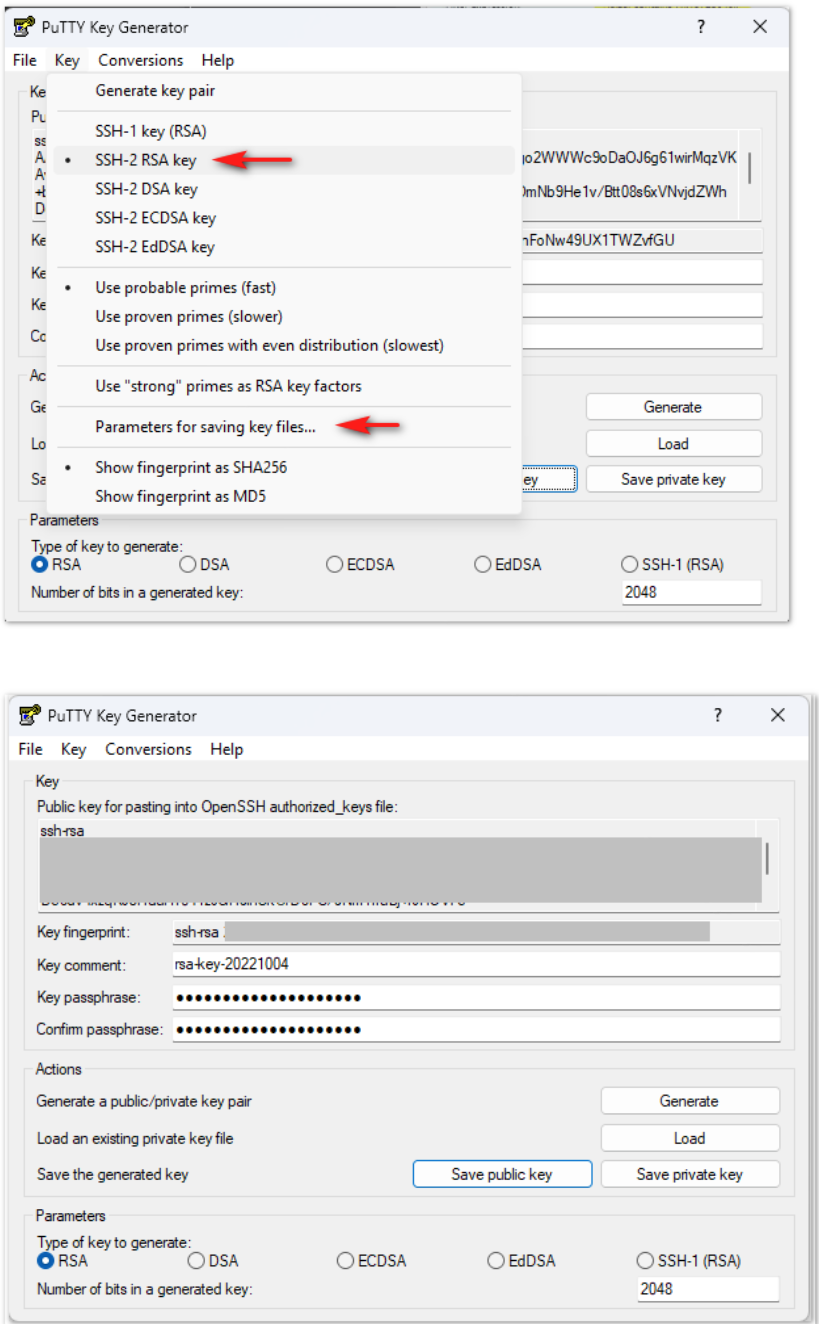 2 - Install PuTTYgen and then open to generate a V2 - Public Key and Private Key (with Passphrase)