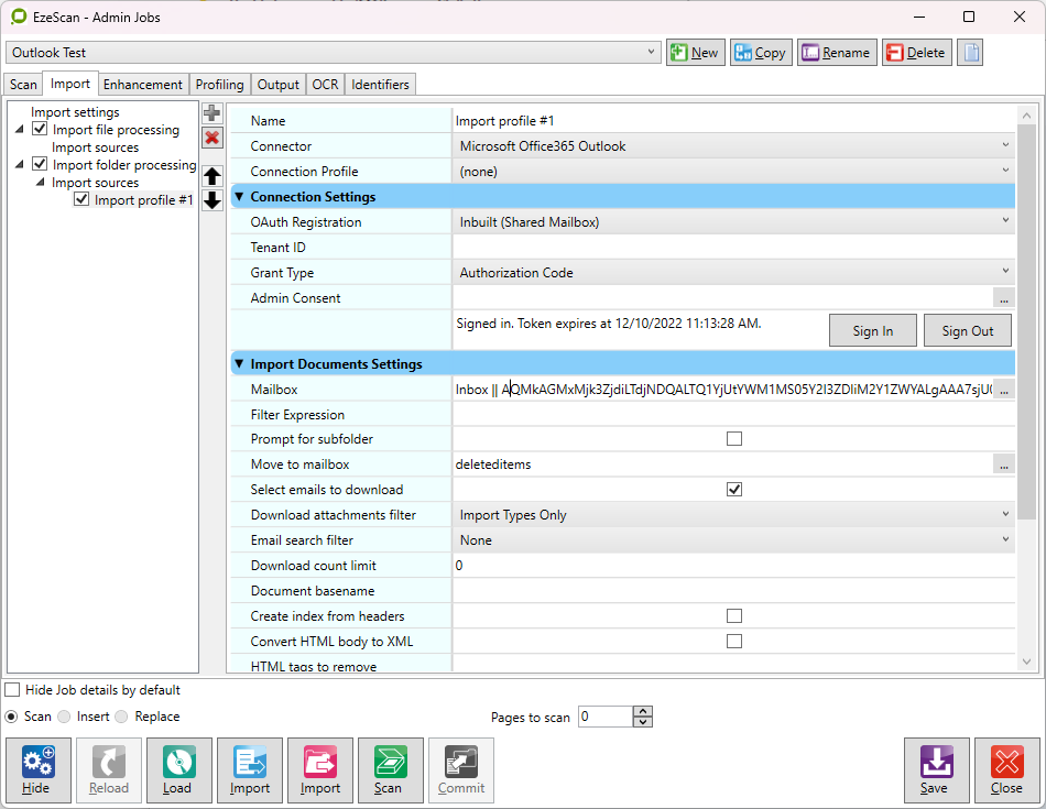 It is recommended to use version 5.x of EzeScan DESKTOP when using the Microsoft Office365 Outlook connector.