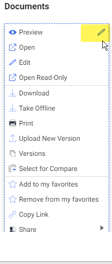 Choose the context menu to edit, and click on the edit (pencil) icon next to preview.