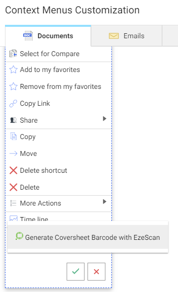 As long as the EzeScan barcode generator was successfully added as per the zip import, you should have the option to choose ‘Generate Coversheet Barcode with EzeScan'.