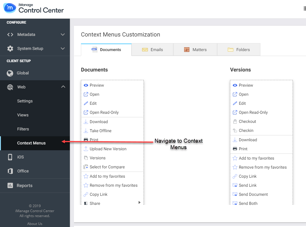 Navigate to the Context Menus page under the web option.