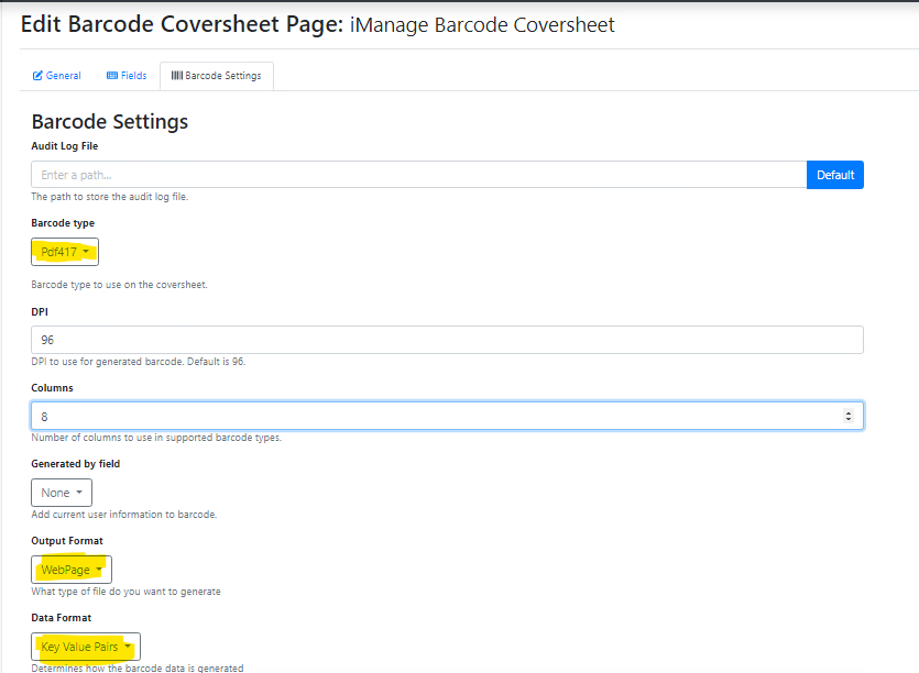 The Barcode contains expected data, but some data doesn’t get uploaded to iManage when the coversheet and document are scanned, and saved to iManage.