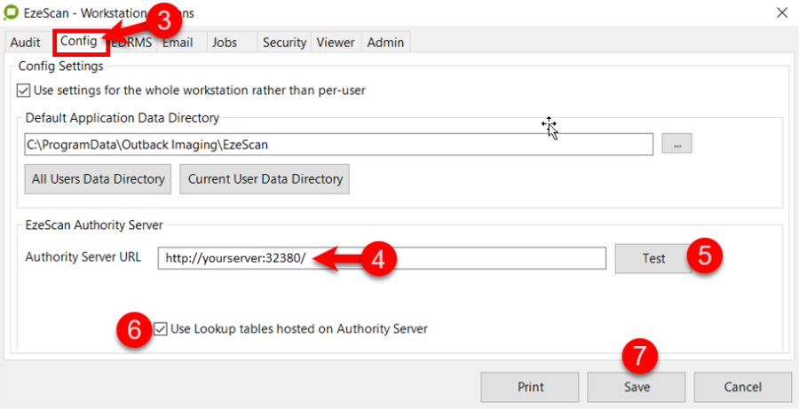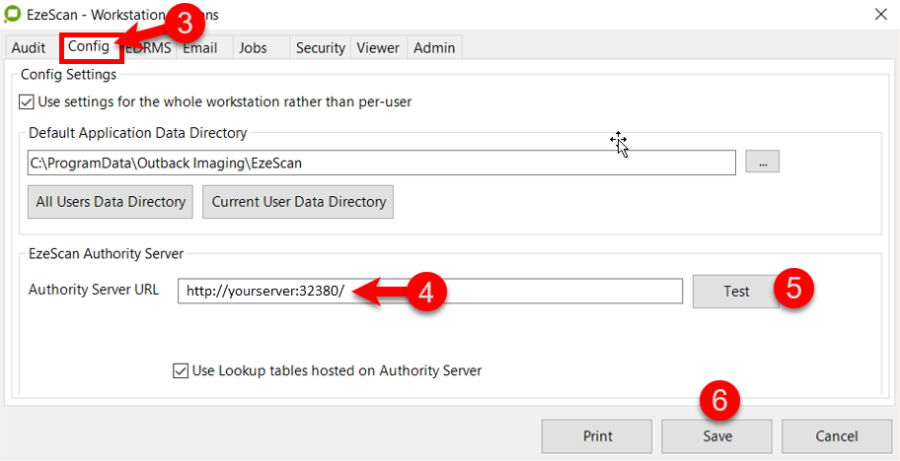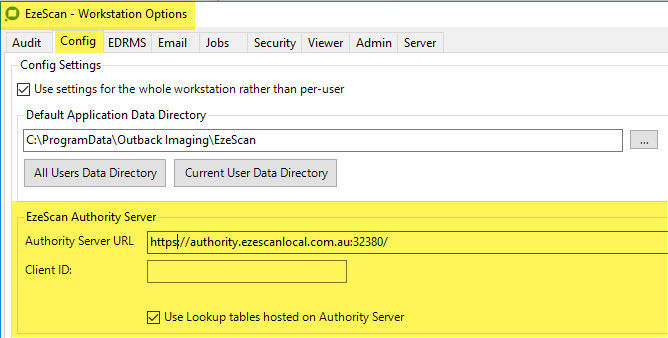 Backup EzeScan once the set-up is completed and roll it out to the other PC's using EzeScan OR update the configs on the Authority Server