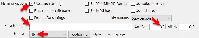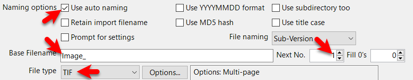 Next No. field set to 1 (number will increment with each scan/import)