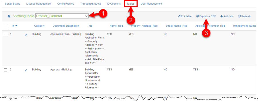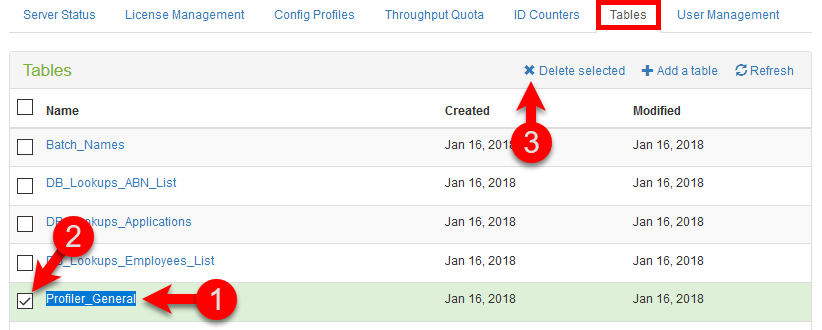 Open the Authority Server in your browser and go to the Tables tab