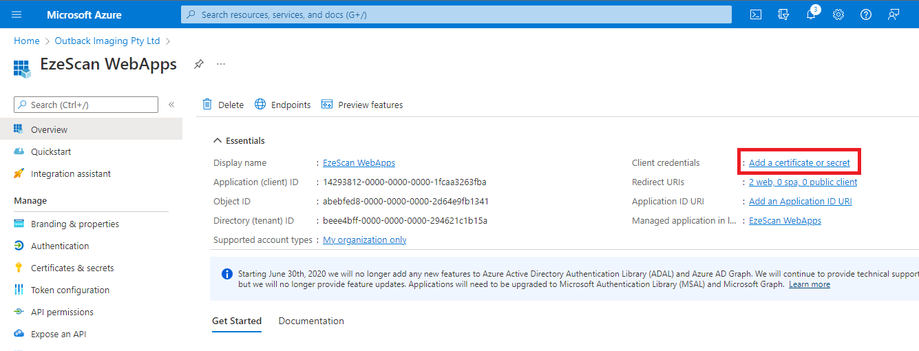| 14 | Click Add a certificate or secret. | ||||||
