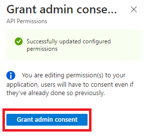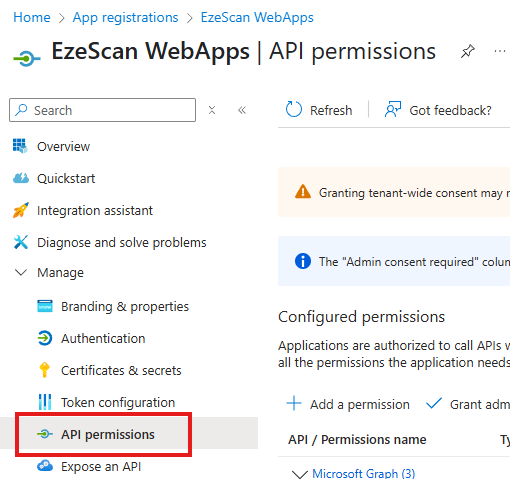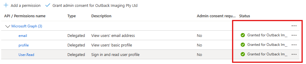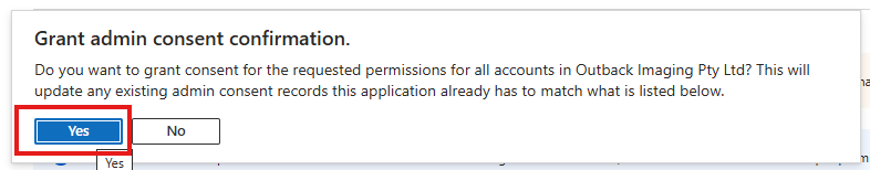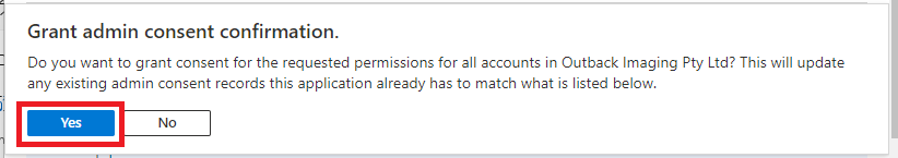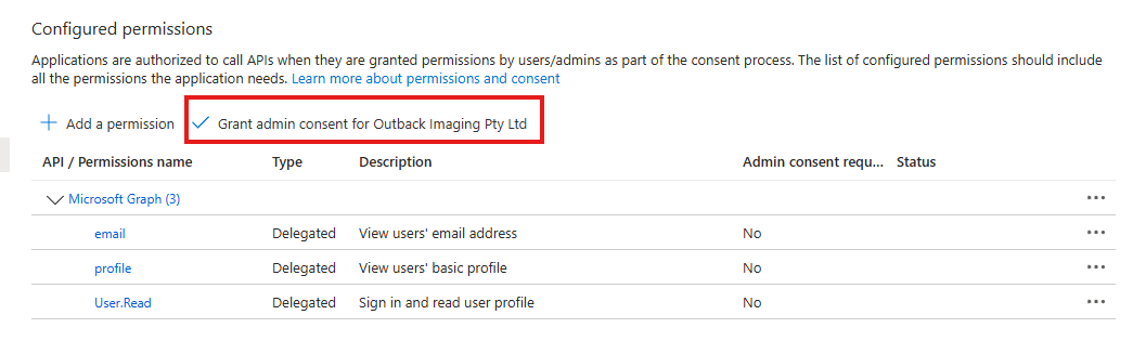 | 10 | Click Grant admin consent for [Organisation Name here] link. ![]() | ||||||||||