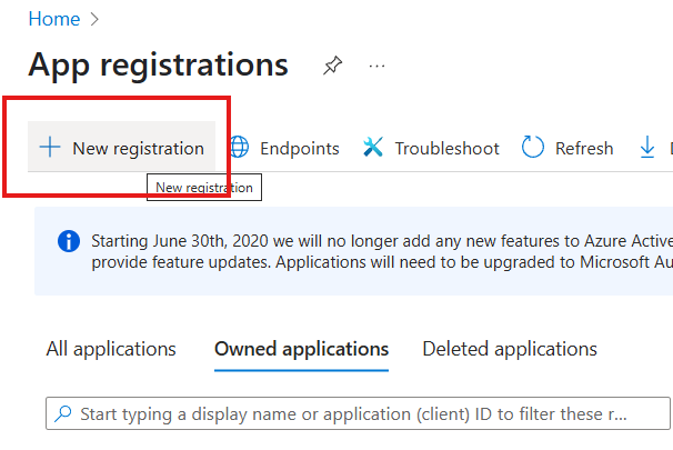 | 1 | Navigate to the Azure Portal and select App registrations. ![]() | ||||||||||