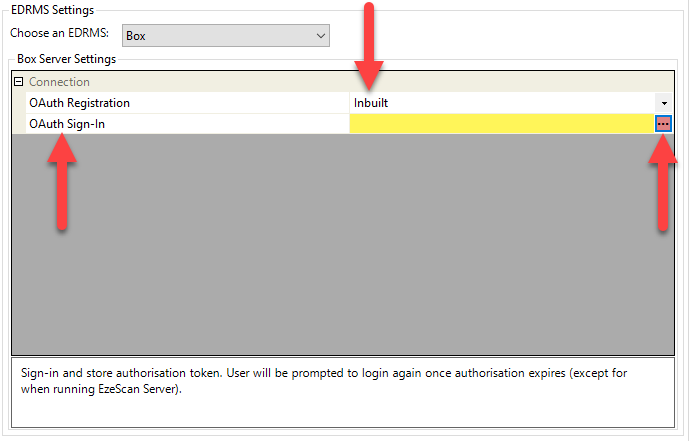 A pre-configured Inbuilt BOX connector registration has been created for the EzeScan Client / Server to simplify the authentication configuration process for the EzeScan Windows Client or Server application.