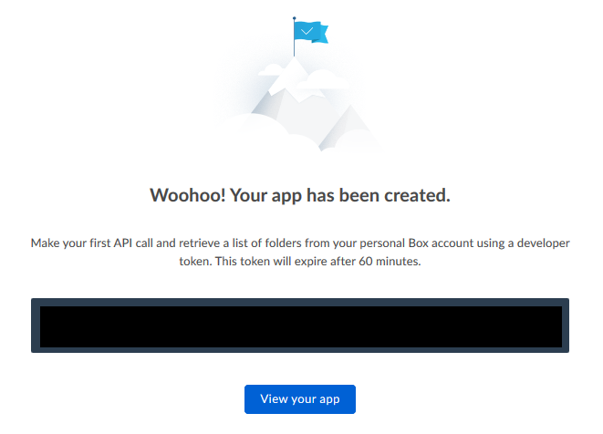 - The creation of the app registration will include a developer token. The token will expire in 60 minutes or be revoked when you click on View your app.