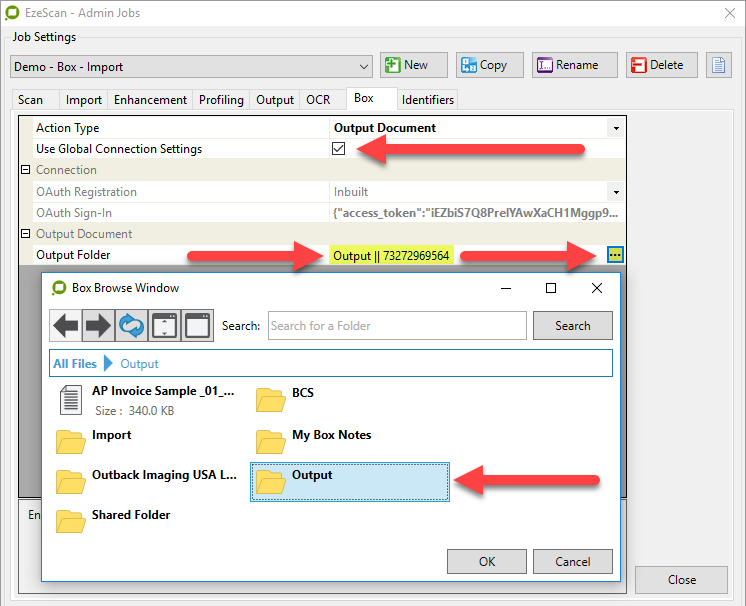TIP: When importing from BOX (instead of a Windows file system) via “Import Folder Processing”, the Release function of the EzeScan client will not be able to release the downloaded document back to BOX and will instead release to the import folder specified in the EzeScan job. This is where it will be reloaded when “Import Folder Processing” is next called upon.