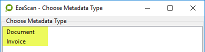 - Allows a user to select a metadata type name where the metadata type will determine the metadata fields applicable.
