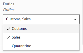 | Multi Select | Duties | Any number of the available items can be selected |