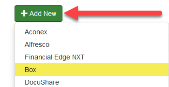 - In Admin/Integrations, click Add New and select the BOX option from the list.