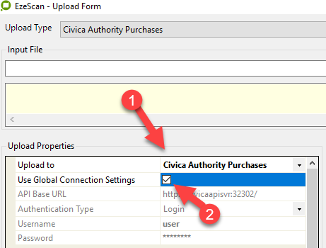 Figure 2 - setting Global Connection Settings on an Upload