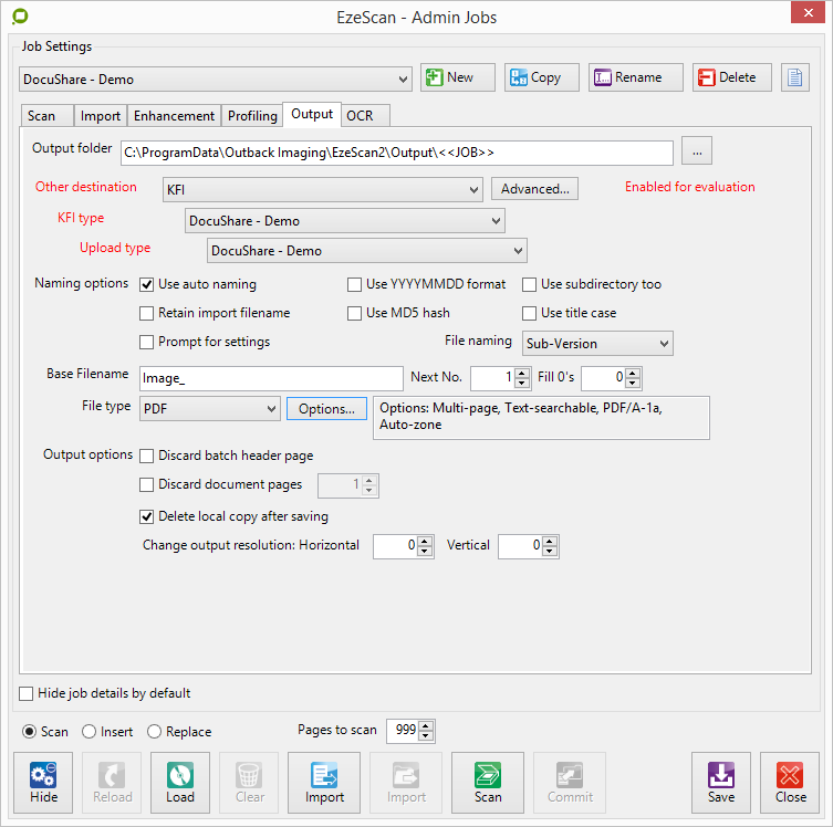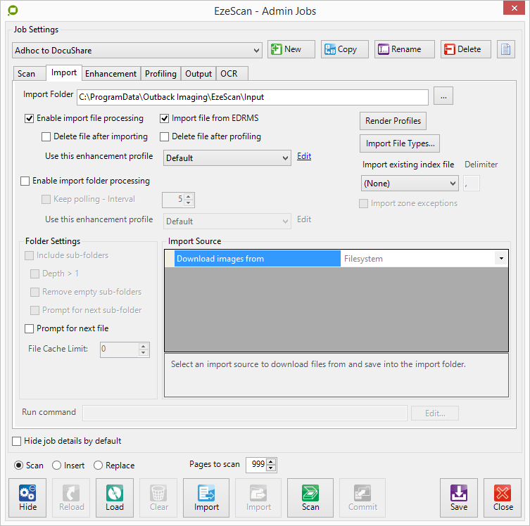 DocuShare Import functionality on a Job is only available when Output to DocuShare is configured - please refer to the section above on how to enable this.