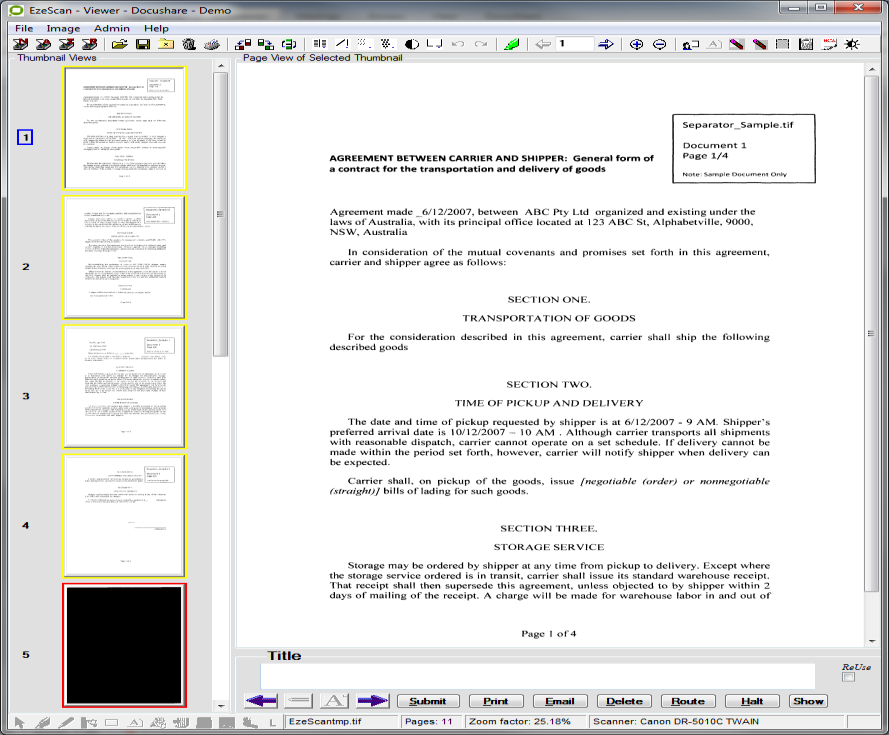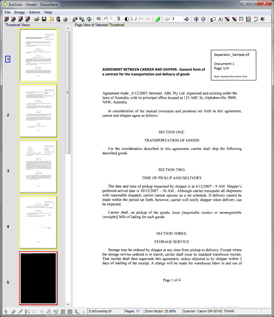 The document will be saved into DocuShare and the next document will appear in EzeScan for profiling.