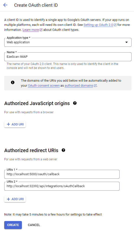 http://localhost:5000/oauth/callbackAdd the following URL to Authorized redirect URIs for sign-in from EzeScan Server web interface
