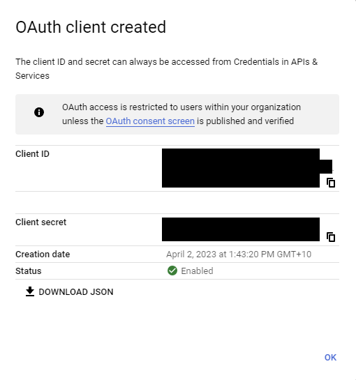 Copy the Client ID and Client secret to a safe location