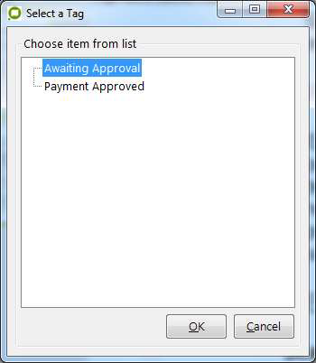 The operator will be prompted to select a Tag.