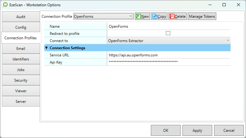 To connect to the OpenForms service, valid Connection Settings are required.