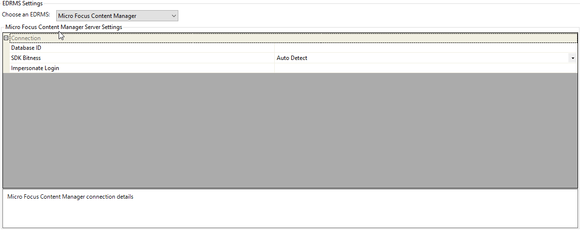TIP:If only using a single Repository, it is recommended that the Micro Focus Content Manager connection settings are configured globally.