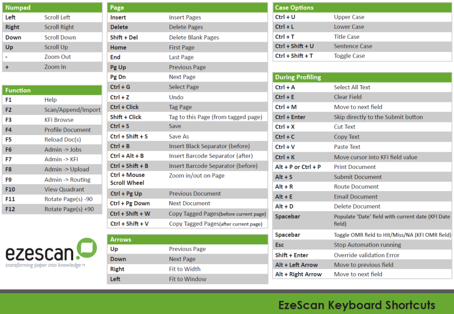 EzeScan uses various shortcut keys to provide faster processing of your invoices and documents.