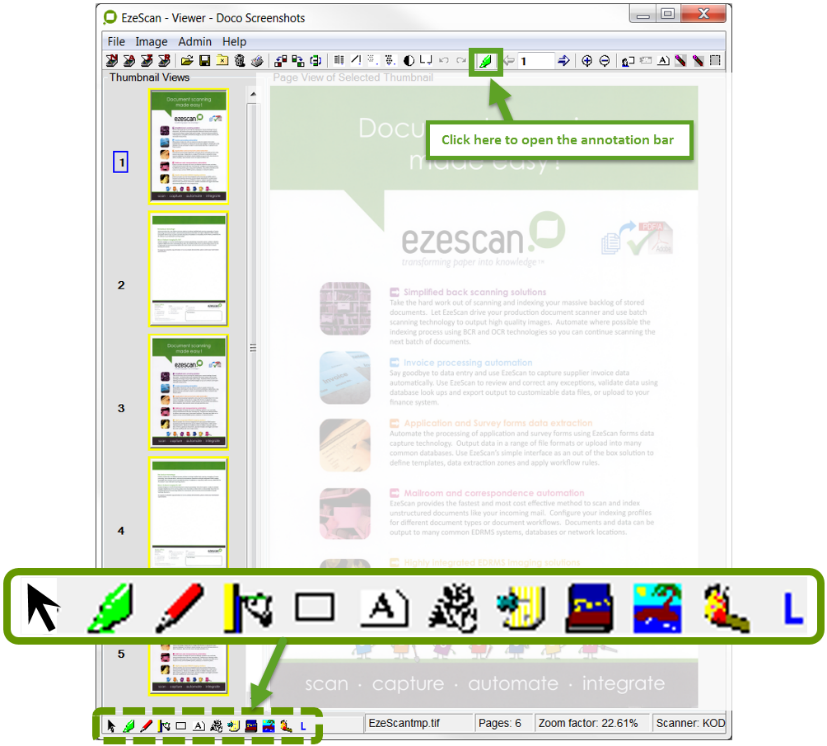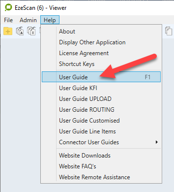 The EzeScan product documentation is available from the main Viewer Help menu and will list documentation specific to the product licensing of EzeScan.