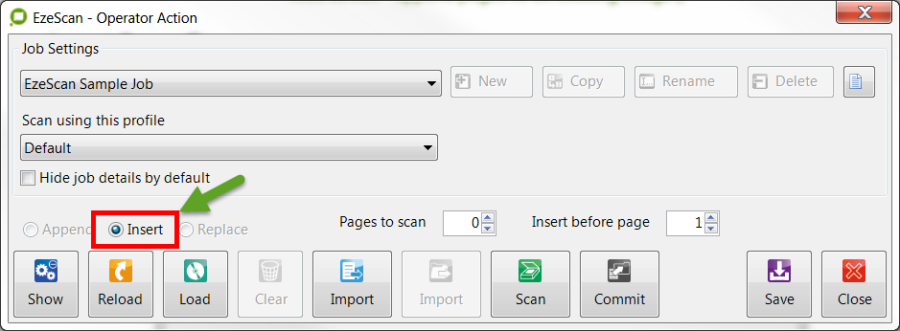 This option will allow an operator to insert pages to the current scan batch.