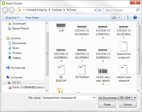 This option will allow the operator to open a Tiff Image.
