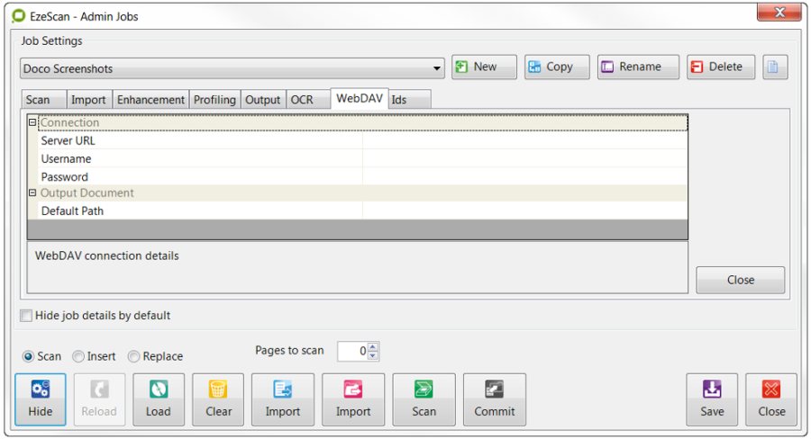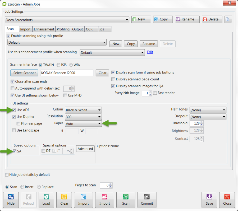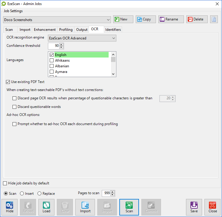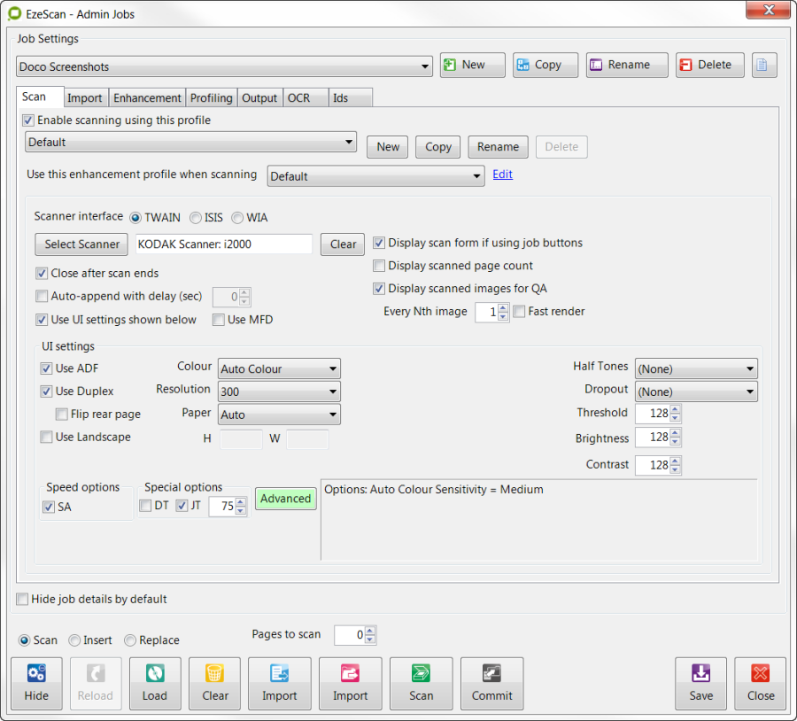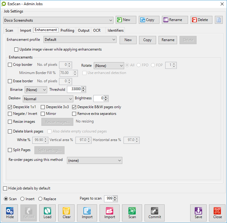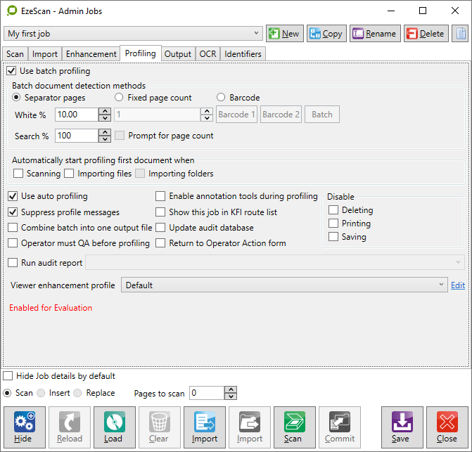 Placing batches into the Batch Manager is quite simple. Simply scan pages or import pages into the EzeScan Viewer using the Job Admin form Scan or Import buttons.