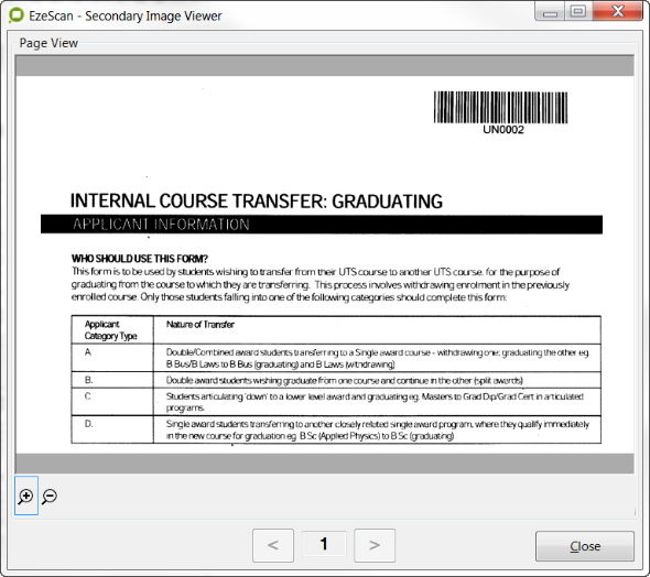 This option will close the currently displayed image pages in the EzeScan Viewer (opened using the File > Open option) in the viewer.