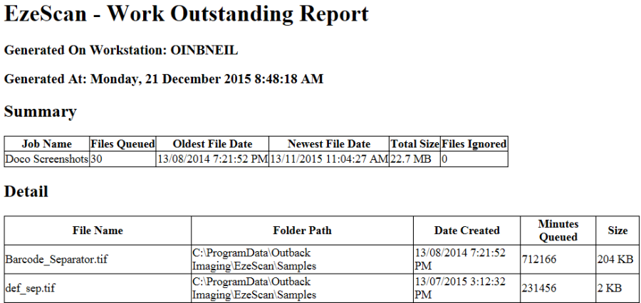 EzeScan will check to see how many files are waiting in the import folder and list them in the report.