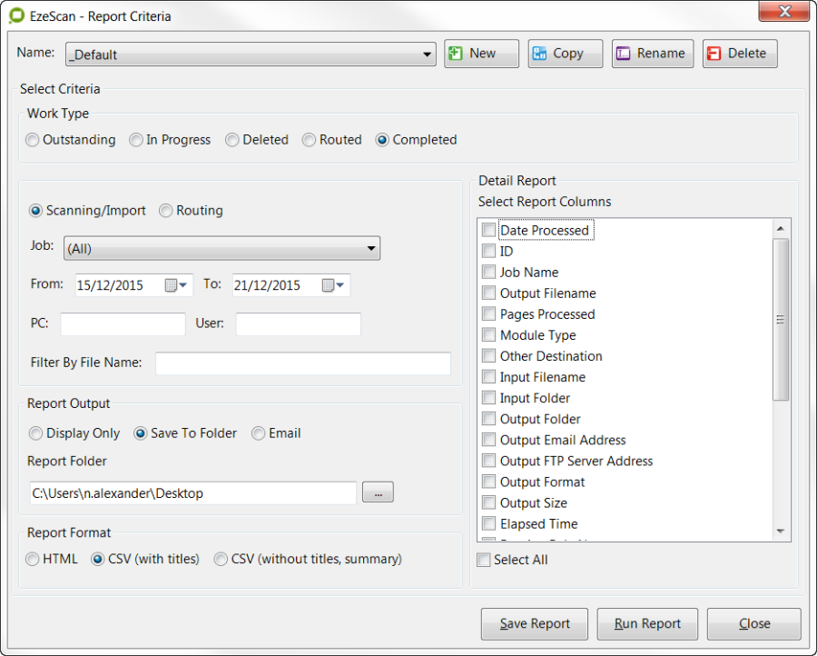 User If specified, EzeScan will display only the jobs that the specified user has performed.