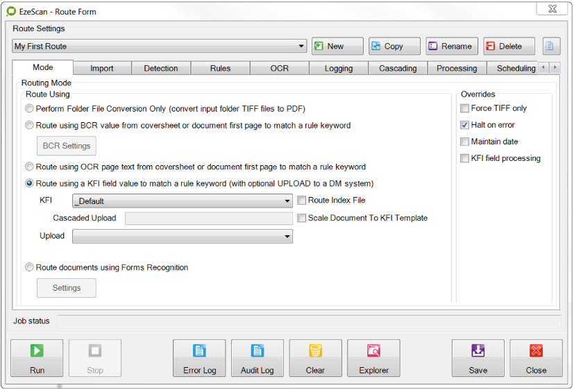 This will display the EzeScan ROUTING interface to allow an operator to run a ROUTING task.