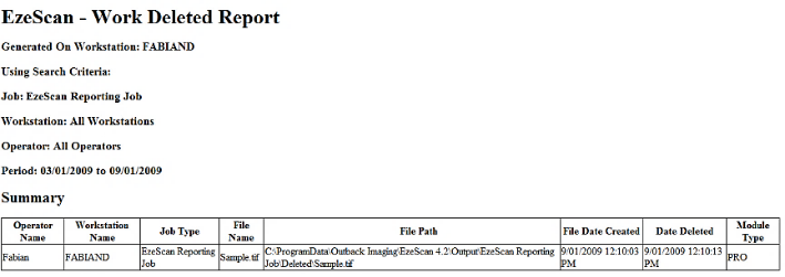 The sample report below shows the job that was used and also the file path that the deleted image has been routed to.