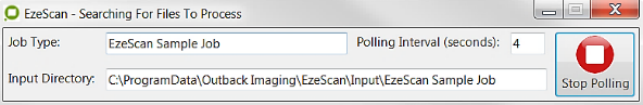 Ensure the service has the required permissions to execute EzeScan.exe, copy rename and delete files in the Input and Output directories.