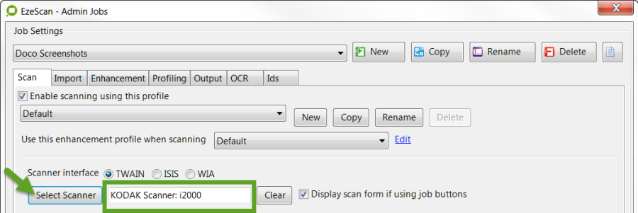This option is used to scan documents through an EzeScan Job Type.