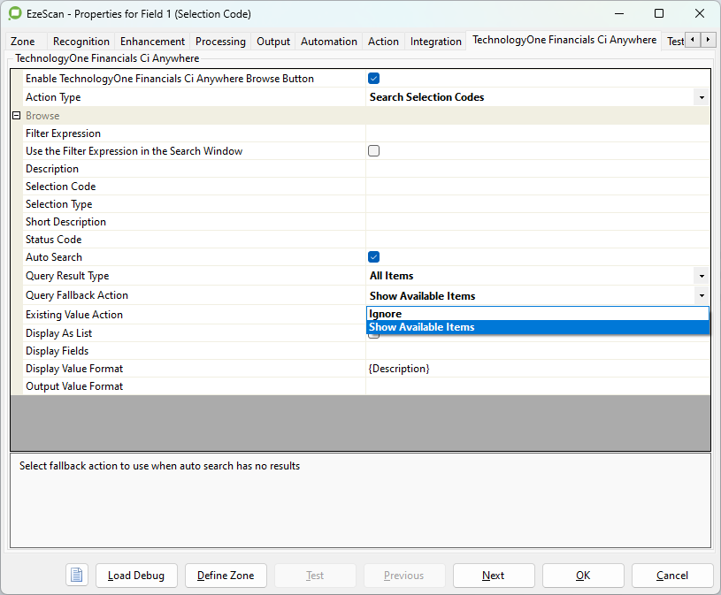 The fields that can be searched can be determined by browsing either the Display Value Format and Output Value Format settings.