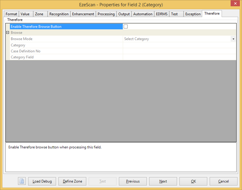 The Therefore settings must be configured before a KFI field can use the Therefore browse functionality.