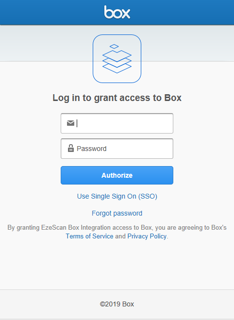 Client users of BOX and EzeScan will be required to enter their BOX authentication credentials to initially establish an authentication token noting that when the token expires they will be prompted to re-enter their credentials in order to re-authenticate.