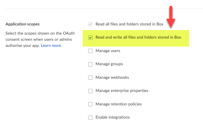 Ensure that the box is ticked next to Read / Write all files and folders stored in BOX.