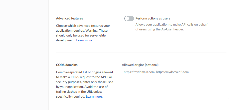 Using OAuth advanced configuration